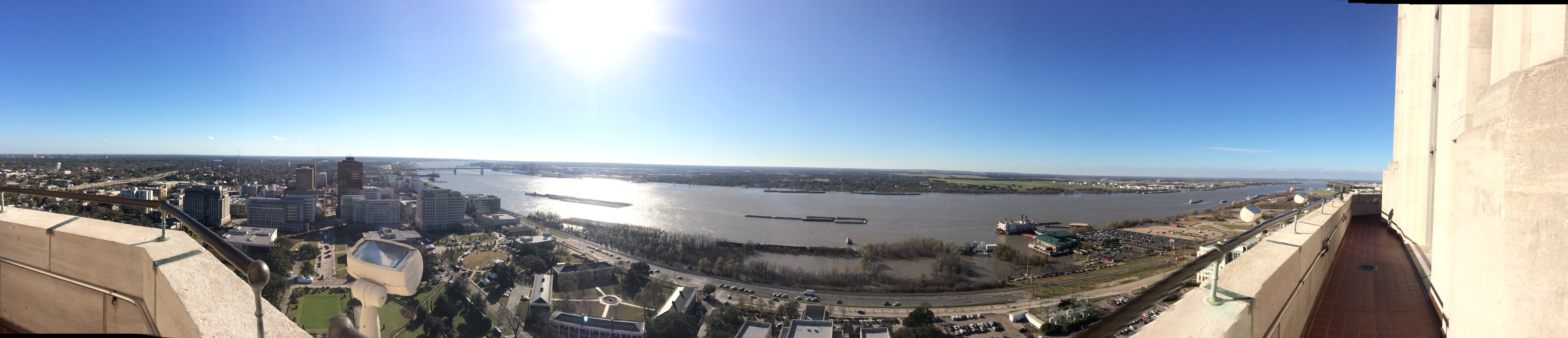 Pano of Baton Rouge Published January 24, 2016 at 5400 × 1166 in Race recap: Louisiana Marathon and 5K ← Previous Next → Panorama of Baton Rouge/the Mississippi from the State Capitol Building