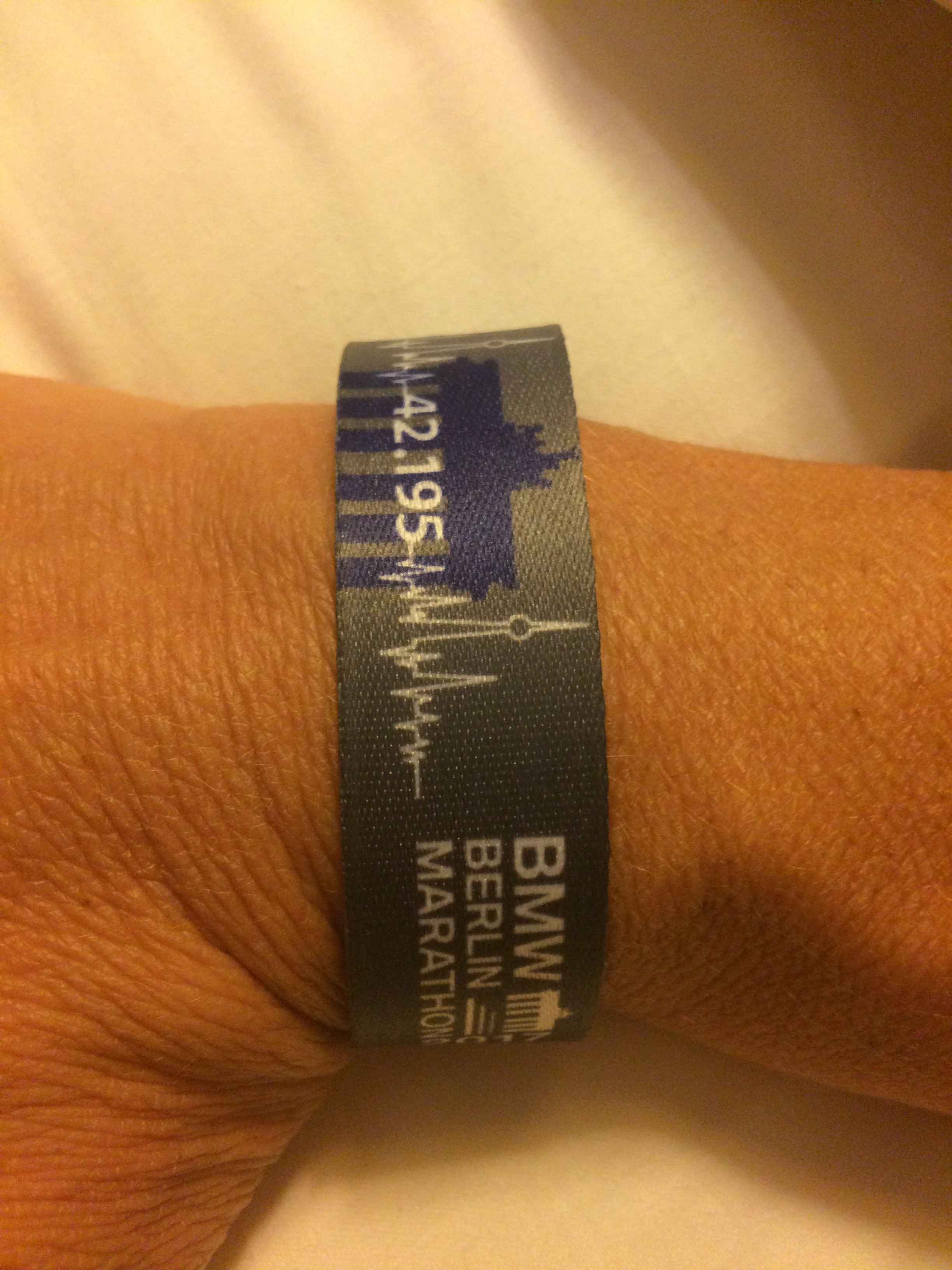 IMG_2181 Published October 9, 2017 at 2448 × 3264 in Race Recap: Berlin Marathon ← Previous Next → Wristband sized for your wrist to verify you are a participant
